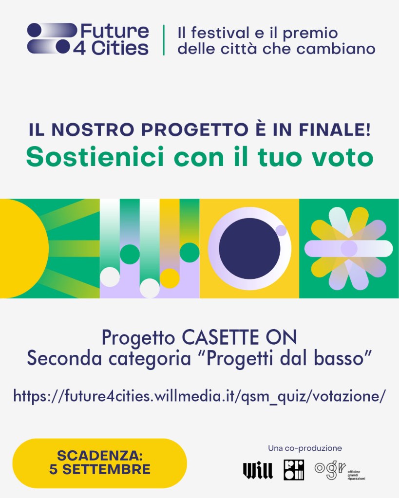 Vote here for CASETTE ON in the second category “Progetti dal basso” (bottom-up projects).