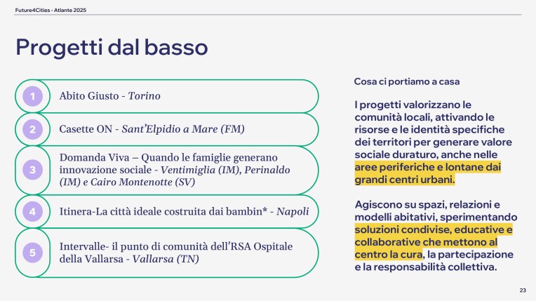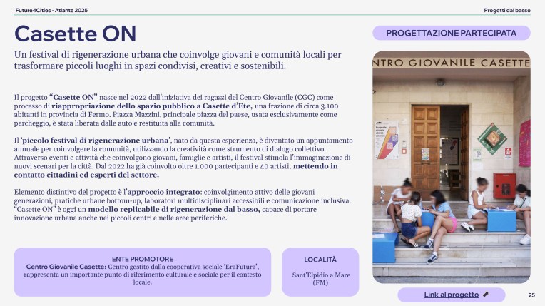 The project Casette ON appears in the Atlas of Changing Cities 2025 (Atlante delle città che cambiano) curated by Will Media and FROM.