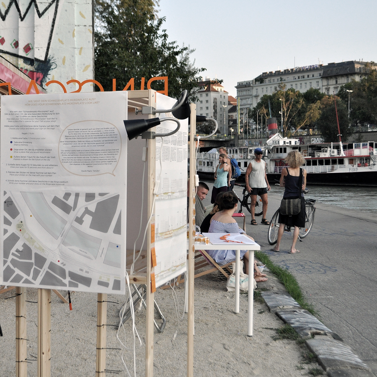 The installation “Ringscape am Donaukanal” was part of the festival “Radsommer am Donaukanal”, promoted by the Municipality of Vienna.